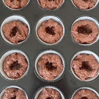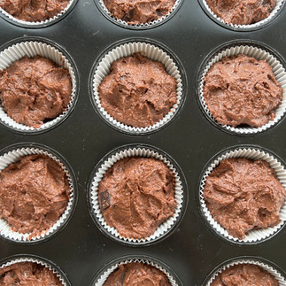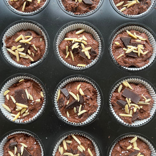 Jetzt kommt der spaßige Teil: Gerne die Muffins vor dem Backen mit 2 TL grobem Salz, einer Handvoll gehackter Schoki und/oder 50g Mandelsplittern toppen. Alles wird jetzt für 20min im Ofen gebacken.